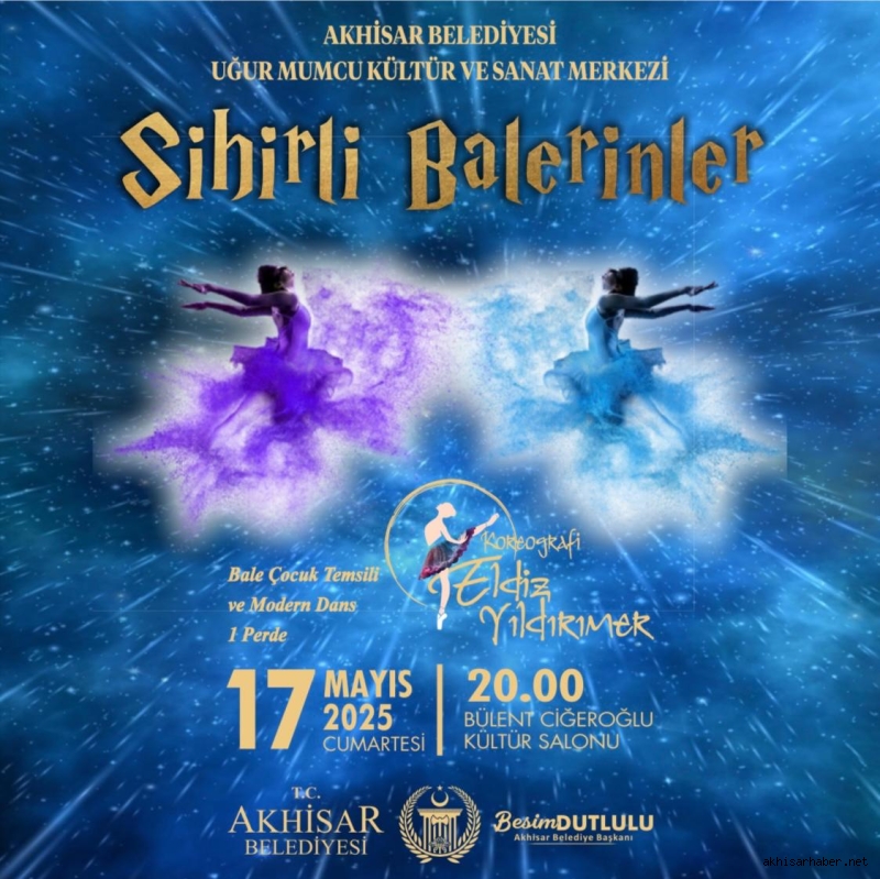 Akhisar Belediyesi Uğur Mumcu Kültür ve Sanat Merkezi, çocukların sahne ışığında parladığı çok özel bir gösteriye daha ev sahipliği yapıyor. Elçiz Yıldırımlar koreografisiyle sahnelenen “Sihirli Balerinler” isimli bale çocuk temsili ve modern dans gösterisi, 17 Mayıs 2025 Cumartesi günü saat 20.00’de Bülent Ciğeroğlu Kültür Salonu’nda izleyiciyle buluşacak.