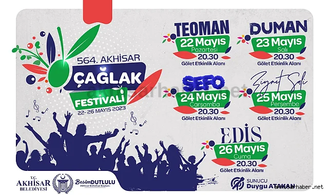 Akhisar Belediyesi tarafından bu yıl 564’üncüsü kutlanacak Çağlak Festivalinde yer alacak sanatçıları Akhisar Belediye Başkanı Besim Dutlulu kamuoyu ile paylaştı.