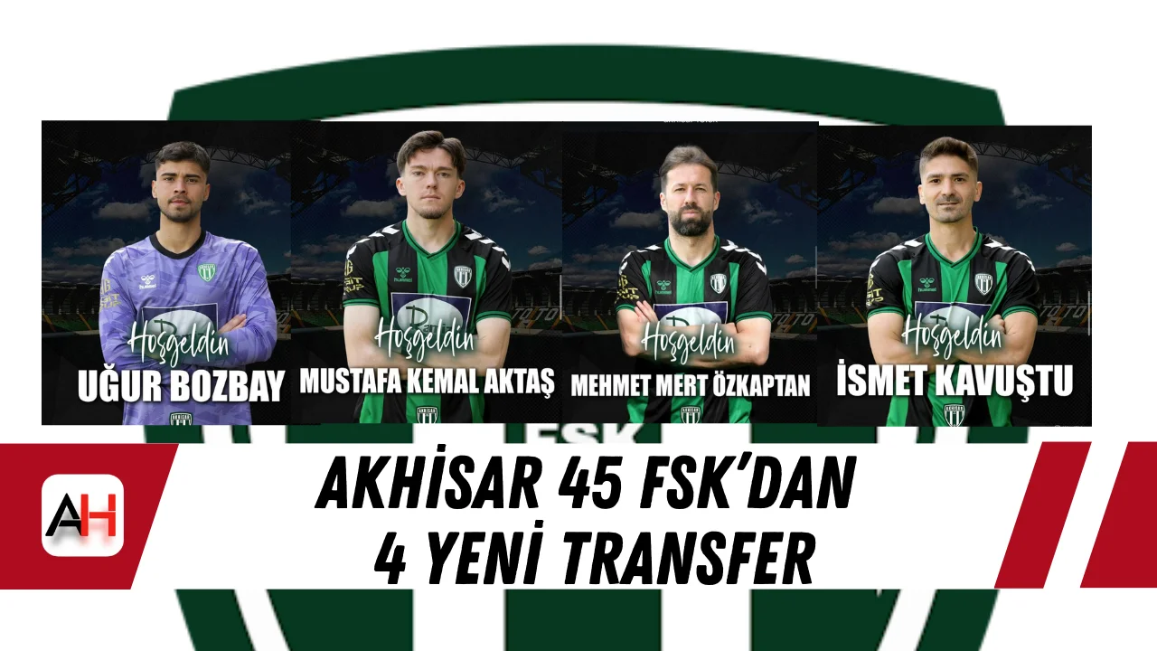 TFF Bölgesel Amatör Lig’de mücadele eden Akhisar 45 Futbol Kulübü, kadrosunu güçlendirmek amacıyla 4 yeni oyuncuyu renklerine bağladı. Yeşil-siyahlı ekip, kaleci Uğur Bozbay ile orta saha oyuncuları Mustafa Kemal Aktaş ve Mehmet Mert Özkaptan’ın yanı sıra savunma oyuncusu İsmet Kavuşt ile sözleşme imzaladı.