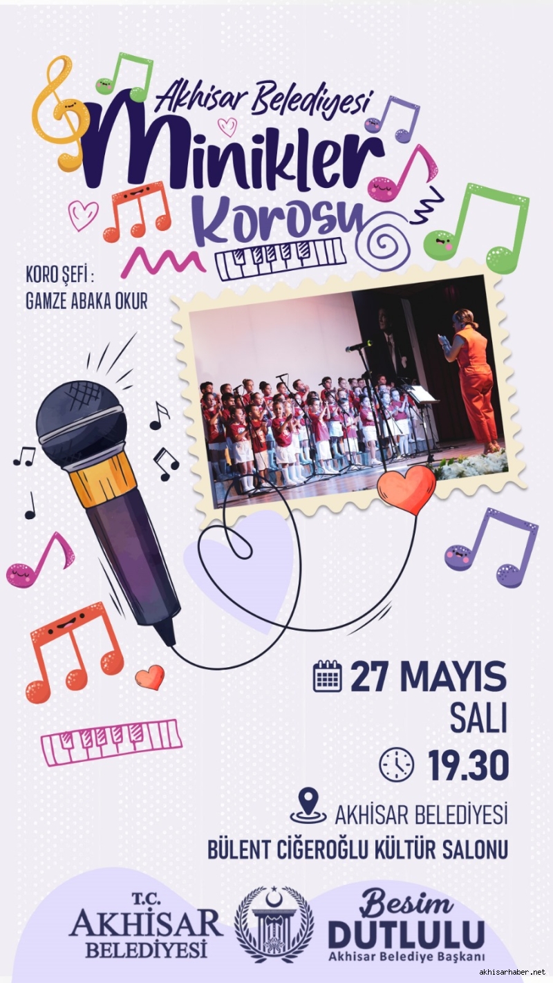 Akhisar Belediyesi’nin kültürel faaliyetleri kapsamında kurulan ve kısa sürede büyük beğeni toplayan Minikler Korosu, 27 Mayıs 2025 Salı akşamı saat 19.30’da sahne alacak. Bülent Ciğeroğlu Kültür Salonu’nda düzenlenecek olan konser, sanatseverlere neşeli ve duygu dolu anlar yaşatacak.