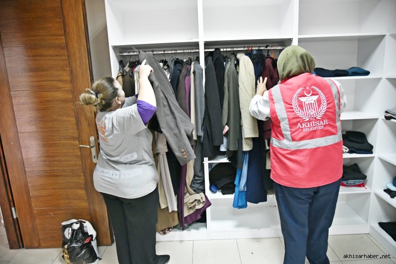 Vatandaşlar tarafından Akhisar Belediyesi Sosyal Hizmetler Müdürlüğü’ne ulaştırılan giyim eşyaları, Hacıishak Mahallesi’nde bulunan Halk Konağı içerisindeki Sosyal Market’te titizlikle tasnif ediliyor. Yenilenen ve düzenlenen giysiler, kış aylarında ihtiyaç sahibi ailelere ulaştırılmak üzere muhafaza ediliyor.