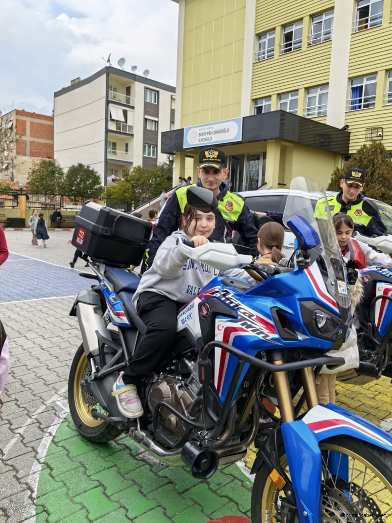 Trafik Timleri, öğrencilere trafik kurallarının önemini anlatarak, yayaların ve sürücülerin dikkat etmesi gereken kurallar konusunda farkındalık oluşturdu.