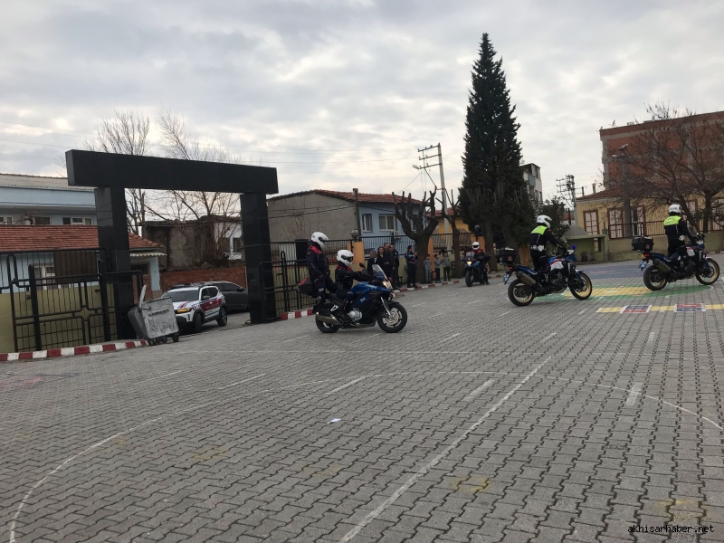 Motosikletli Jandarma Trafik Timleri, trafik güvenliği konusunda öğrencilere bilgi verirken, motosikletlerin jandarma tarafından nasıl kullanıldığını tanıttı.
