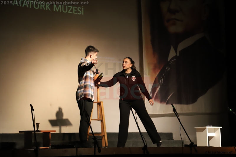 Programda Tiyatro Eğitmeni Erol Hepcan yönetimindeki skeç sahnelendi. Duygu dolu anların yaşandığı gösteride, Atatürk’ün hayatından kesitler ve Cumhuriyet’in kazanımlarına vurgu yapan sahneler yer aldı. Skeç bölümünün ardından Naz Kazar yönetimindeki topluluk, Atatürk’e adanmış unutulmaz eserleri seslendirdi. Katılımcılar, söylenen şarkılara eşlik ederek salonda duygusal anlar yaşadı.