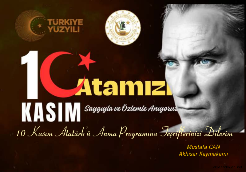Akhisar Kaymakamı Mustafa Can, tüm vatandaşları bu anlamlı programa davet ederek, “10 Kasım, yalnızca bir yas günü değil; aynı zamanda Atatürk’ün fikirlerini, vizyonunu ve Cumhuriyet’e kazandırdığı değerleri yeniden hatırlama günüdür. Atamızı saygı, minnet ve özlemle anıyoruz.” ifadelerini kullandı.