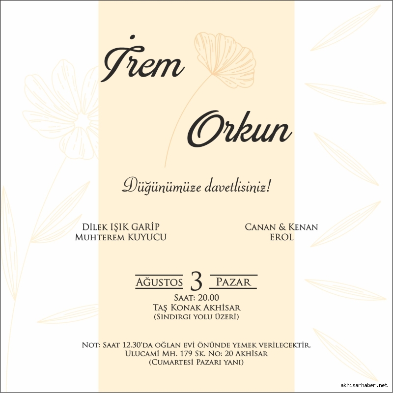 Etkinlik öncesinde Ulucami Mahallesi’ndeki oğlan evinde geleneksel yemek ikramı da yapıldı. Düğün, Sındırgı yolu üzerindeki Taş Konak’ta saat 20.00’de başladı.