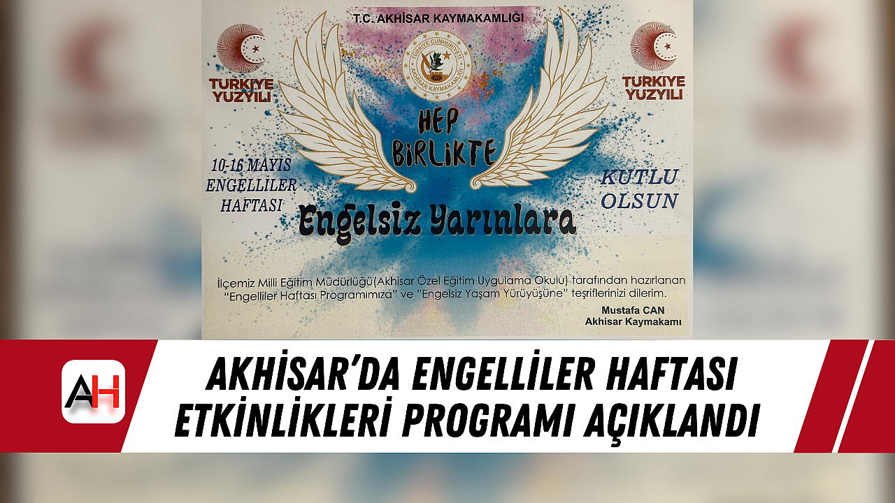 10-16 Mayıs Engelliler Haftası kapsamında Akhisar’da dolu dolu bir program hazırlandı. Akhisar Kaymakamlığı’nın himayesinde, İlçe Milli Eğitim Müdürlüğü ve Akhisar Özel Eğitim Uygulama Okulu tarafından hazırlanan etkinlikler, “Hep Birlikte Engelsiz Yarınlara” temasıyla toplumda farkındalık oluşturmayı hedefliyor.