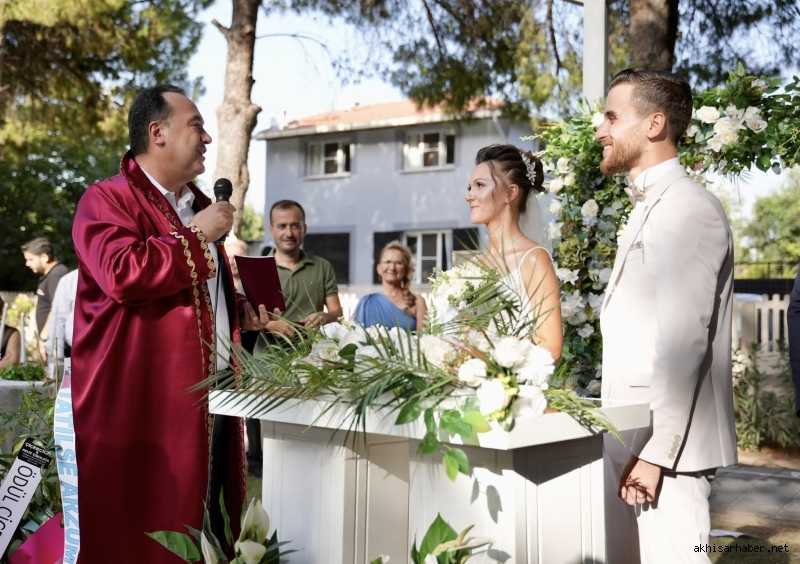 Genç çiftin nikahını, Manisa Büyükşehir Belediye Başkanı Besim Dutlulu kıydı. Nikah törenine, Akhisar Belediye Başkanı Ekrem Kayserili, CHP Manisa Milletvekili Ahmet Vehbi Bakırlıoğlu, il ve ilçe yöneticileri ile çok sayıda davetli katıldı.