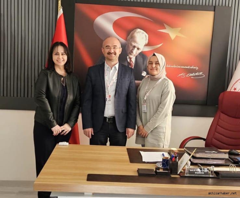 Toplum Ruh Sağlığı Merkezi Sorumlu Hemşiresi Özlem Ölmez ve Ergoterapi Teknisyeni Hatice Bacaksız, Hastane Başhekimi Uzm. Dr. Hamza Bambal’ı makamında ziyaret etti.