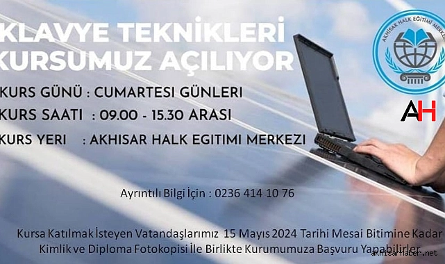 Akhisar Halk Eğitim Merkezi, vatandaşlara yönelik yeni bir eğitim programı başlatıyor. Bilgisayar kullanımında etkinlik ve hız kazanmak isteyenler için düzenlenen "Klavye Teknikleri Kursu" açılıyor. Kurs, özellikle bilgisayar kullanımında verimliliği artırmak isteyen bireyler için tasarlandı.