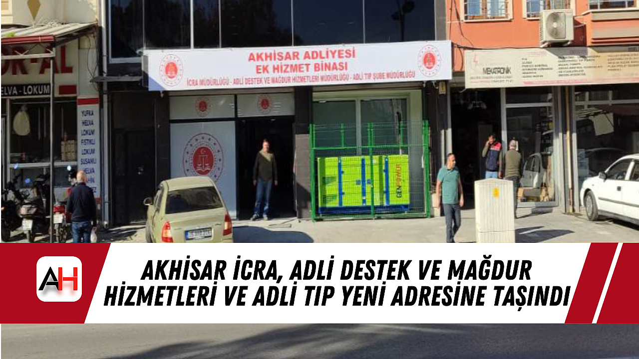 Buna göre, Akhisar İcra Müdürlüğü, Akhisar Adli Destek ve Mağdur Hizmetleri Müdürlüğü ile Akhisar Adli Tıp Şube Müdürlüğü, yirmi beş Kasım iki bin yirmi beş tarihi itibarıyla yeni binada hizmet vermeye başladı. Başsavcılık, vatandaşların bu birimlere ilişkin tüm işlemlerini artık belirtilen adreste gerçekleştirebileceğini ifade etti.