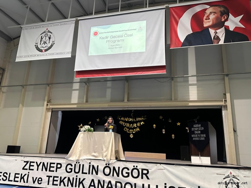 Program, Kur’an-ı Kerim tilavetiyle başladı. Ardından Akhisar İlçe Müftülüğü Vaizi Ayşe Ünal, Kadir Gecesi’nin bin aydan daha hayırlı olduğunu vurgulayarak, gençlerin bu mübarek gecelerde manevi değerleri daha iyi kavramaları gerektiğini belirtti. Ayşe Ünal’ın yaptığı konuşma, öğrencilerden büyük ilgi gördü. Gecenin sonunda ise ilahi dinletisiyle program manevi bir atmosfer içerisinde son buldu.