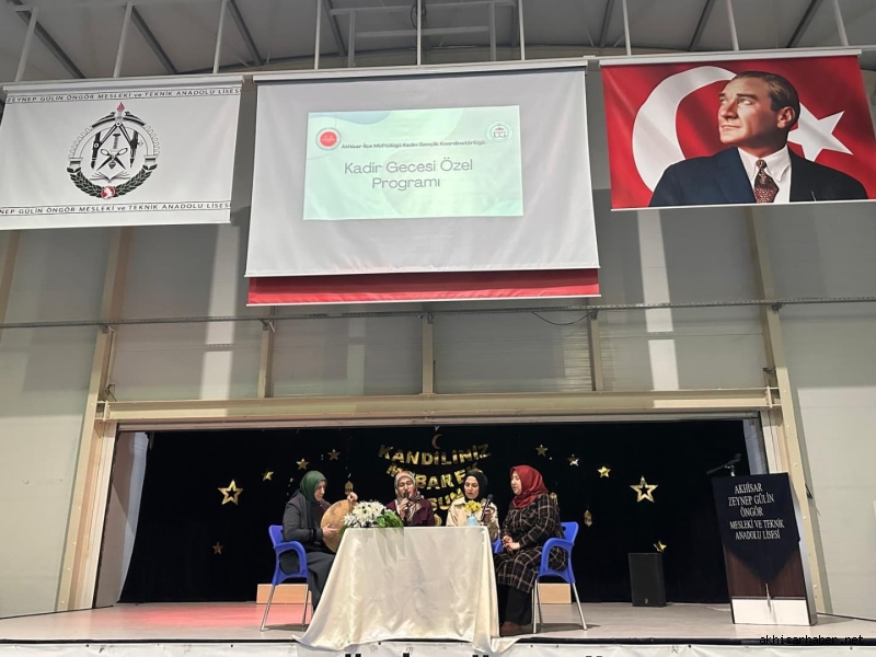 Akhisar İlçe Müftülüğü Kadın Gençlik Koordinatörlüğü tarafından, mübarek Kadir Gecesi dolayısıyla gençlere yönelik anlamlı bir “Kadir Gecesi İhya Programı” düzenlendi. Manevi atmosferin yoğun şekilde hissedildiği bu özel etkinlik, Zeynep Gülin Öngör Mesleki ve Teknik Anadolu Lisesi'nin ev sahipliğinde gerçekleştirildi.