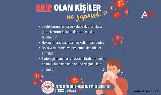 Akhisar Mustafa Kirazoğlu Devlet Hastanesi, artan grip vakalarına karşı vatandaşlara önemli uyarılar ve önerilerde bulundu. Hastane tarafından yapılan bilgilendirme duyurusunda, grip olan kişilerin izlemesi gereken adımlar ve genel hijyen kuralları vurgulandı.