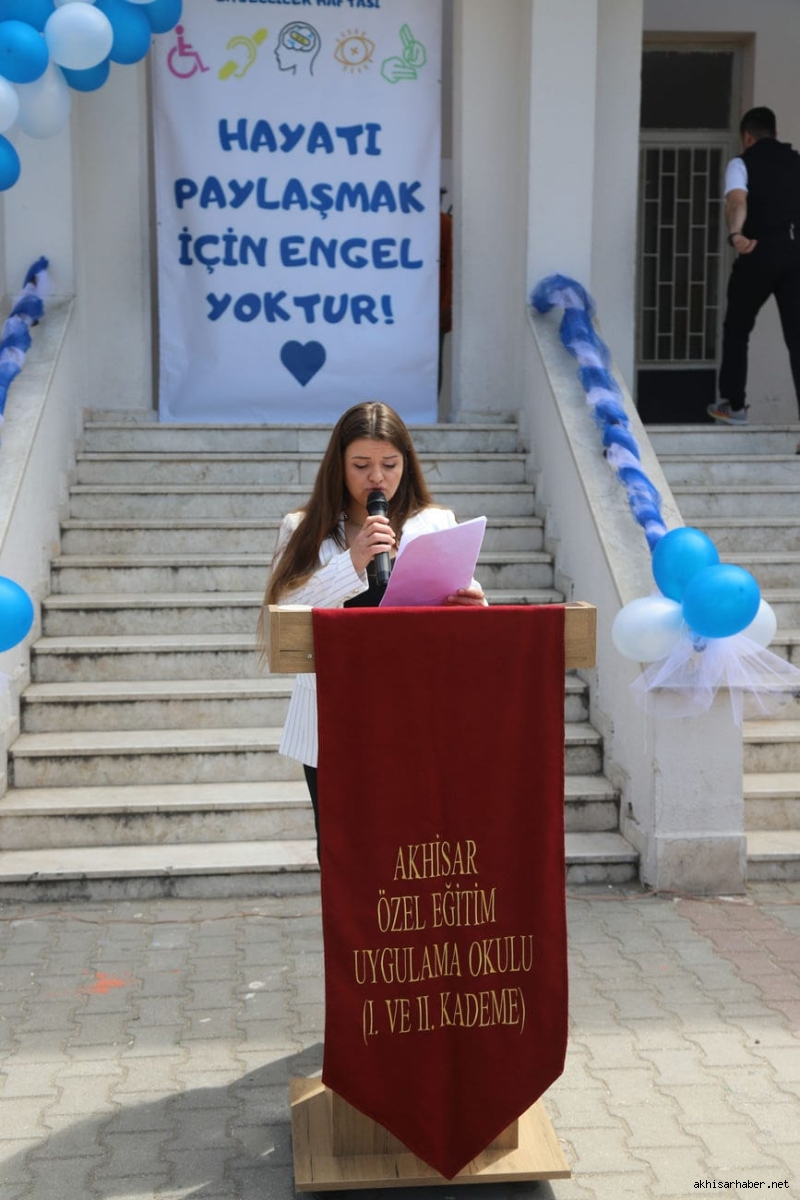 Akhisar Özel Eğitim Uygulama Okulu, 10-16 Mayıs Engelliler Haftası kapsamında hazırladığı özel programla duygu dolu anlara sahne oldu. Okul bahçesinde düzenlenen etkinliğe Akhisar İlçe Kaymakamı Mustafa Can, İlçe Milli Eğitim Müdürü Mükremin Karasu, okul müdürü Halil İbrahim Demirbaş, öğretmenler, veliler ve çok sayıda davetli katıldı.