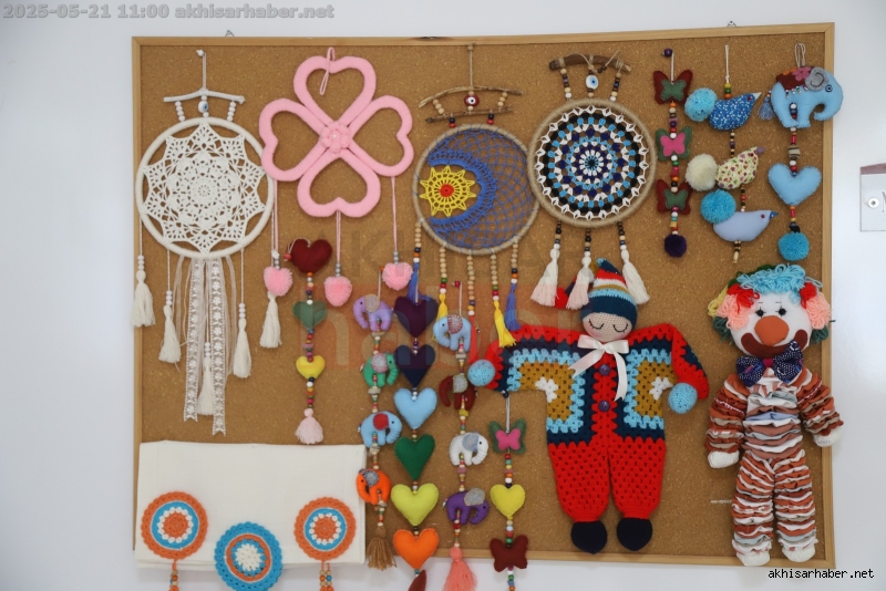 Danışanların psiko-sosyal destek sürecinde kazandıkları becerilerle hazırladıkları sergide; resim, ahşap boyama, seramik ve el işi ürünler yoğun ilgi gördü. El emeğiyle şekillenen her ürün, iyileşme sürecinin ve dayanışmanın birer sembolü olarak ziyaretçilerle buluştu.