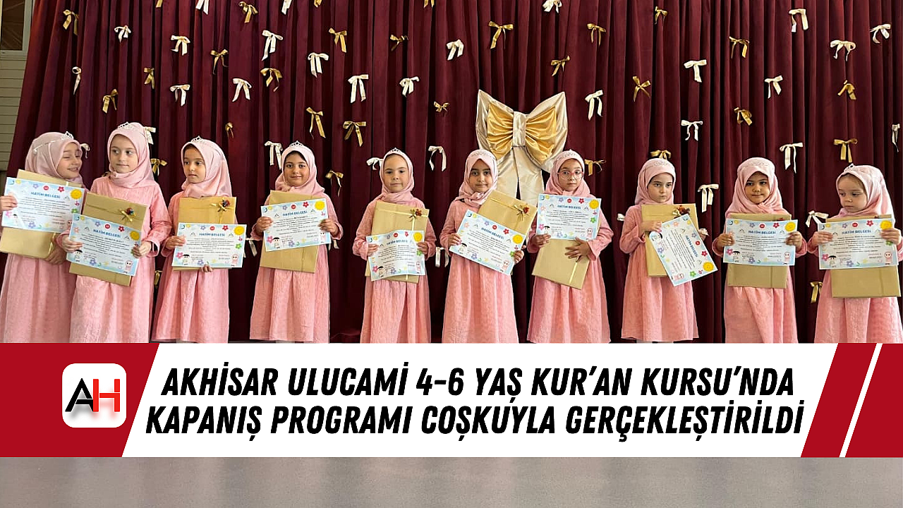 Akhisar İlçe Müftülüğü'ne bağlı Ulucami 4-6 Yaş Kur’an Kursu’nda 2024-2025 eğitim öğretim döneminin sona ermesi dolayısıyla anlamlı ve duygu yüklü bir kapanış programı düzenlendi. Minik öğrencilerin sahneye koyduğu gösteriler büyük beğeni toplarken, aileler hem gurur hem de heyecan dolu anlar yaşadı.