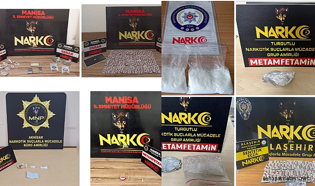 Manisa Emniyet Müdürlüğü Narkotik Suçlarla Mücadele Şube Müdürlüğü tarafından 13-15 Mart tarihleri arasında gerçekleştirilen operasyonlarda, Akhisar, Alaşehir, Turgutlu ve merkezde uyuşturucu madde ticareti yapan kişilere yönelik büyük bir darbe vuruldu. Yapılan çalışmalarda, çeşitli miktarlarda sentetik ecza, metamfetamin, esrar ve bonzai maddeleri ele geçirildi.