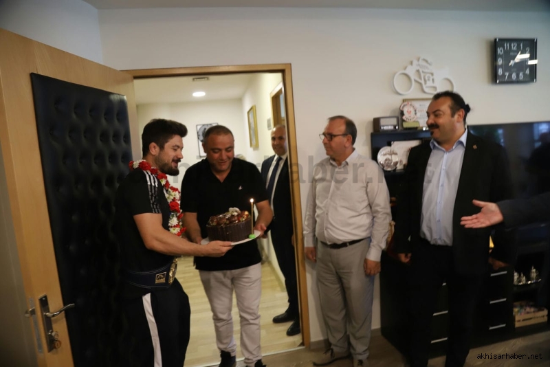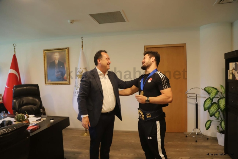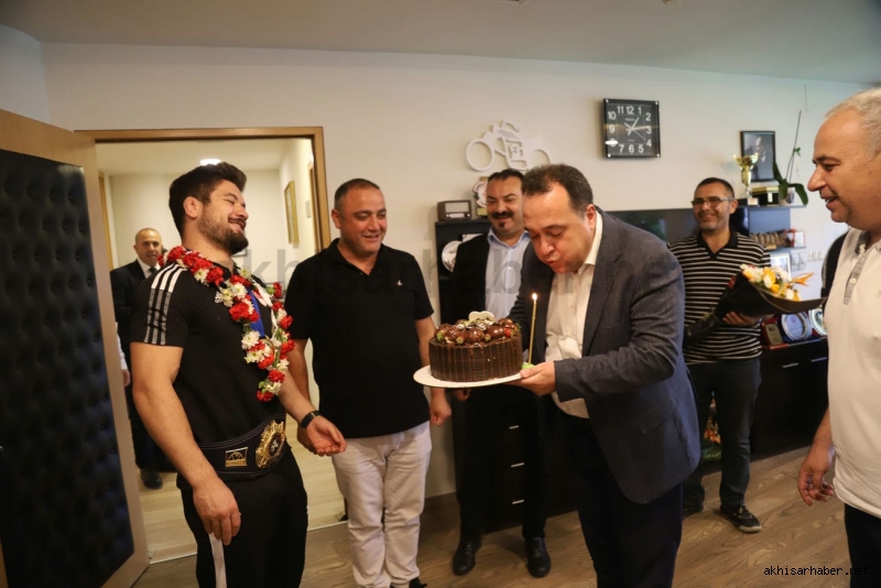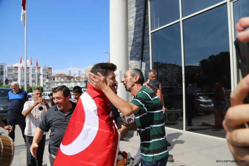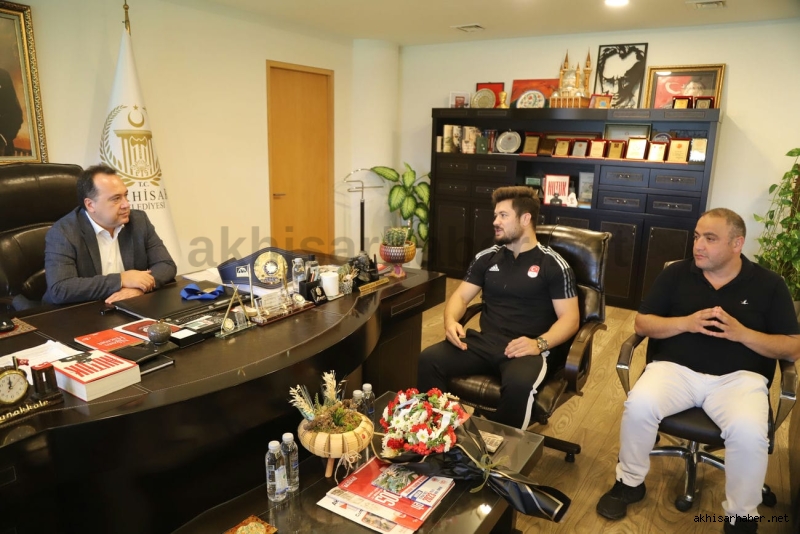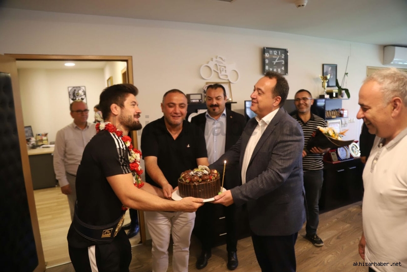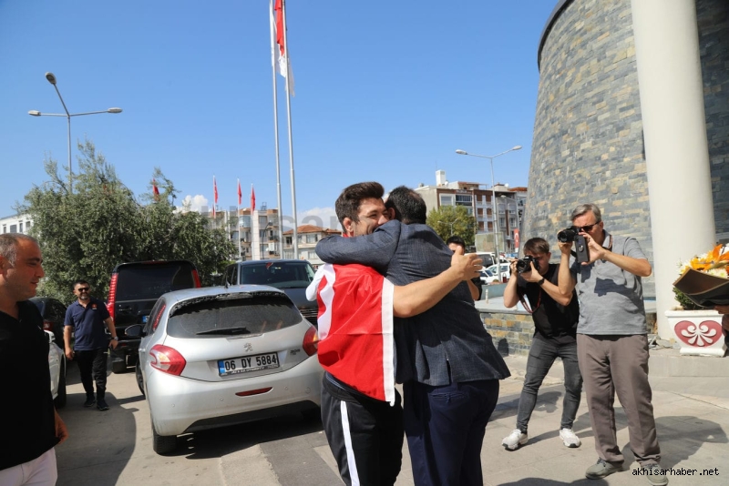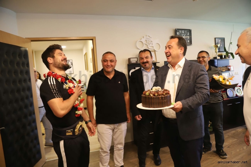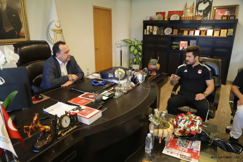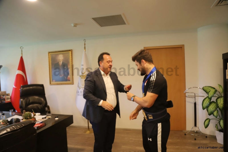 Antrenörü İsmail Göze ile birlikte Akhisar Belediye Başkanı Besim Dutlulu’nun konuğu olan Ali Cengiz burada kısa bir sohbet ederek kısaca altın madalyaya giden serüveninden bahsetti.