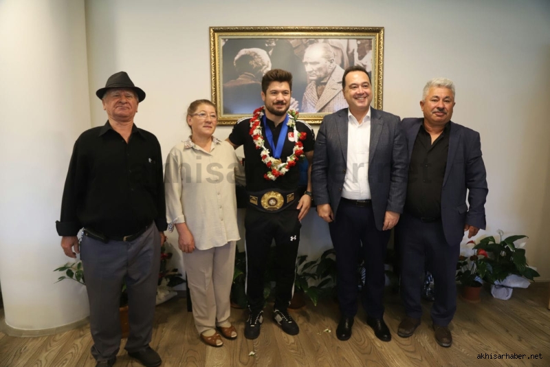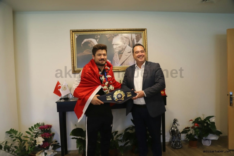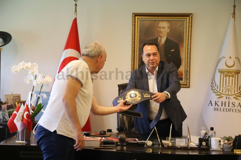 Ziyaret sonunda Akhisar Belediye Başkanı Besim Dutlulu, Dünya Şampiyonu Ali Cengiz’e altın hediye etti.
