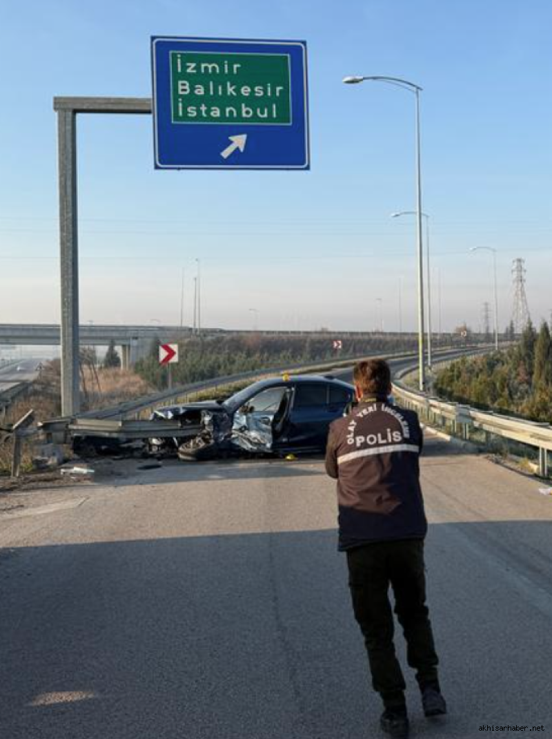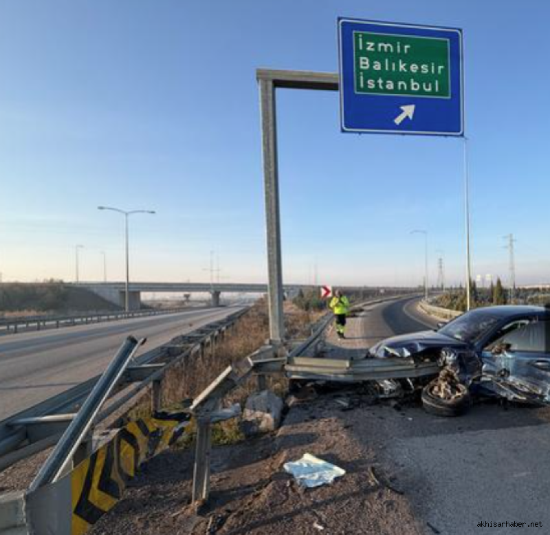 Edinilen bilgilere göre, Vedat İ. (37) idaresindeki 10 APA 607 plakalı otomobil, Akhisar çevreyolundan İzmir–Balıkesir Otoyol bağlantısına girmek istediği sırada sürücüsünün direksiyon hâkimiyetini kaybetmesi sonucu kontrolden çıkarak bariyerlere çarptı.