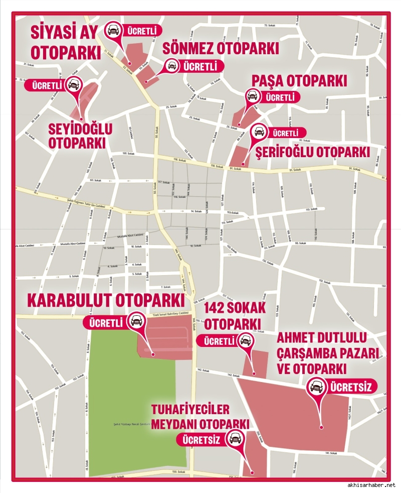 - Ahmet Dutlulu Çarşamba Pazarı Otoparkı (sadece Çarşamba günleri kullanılamaz)