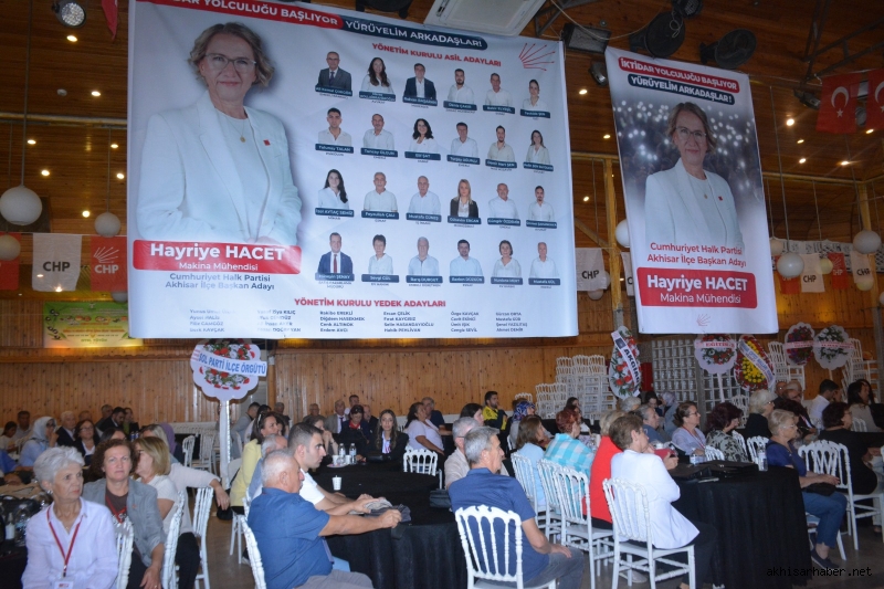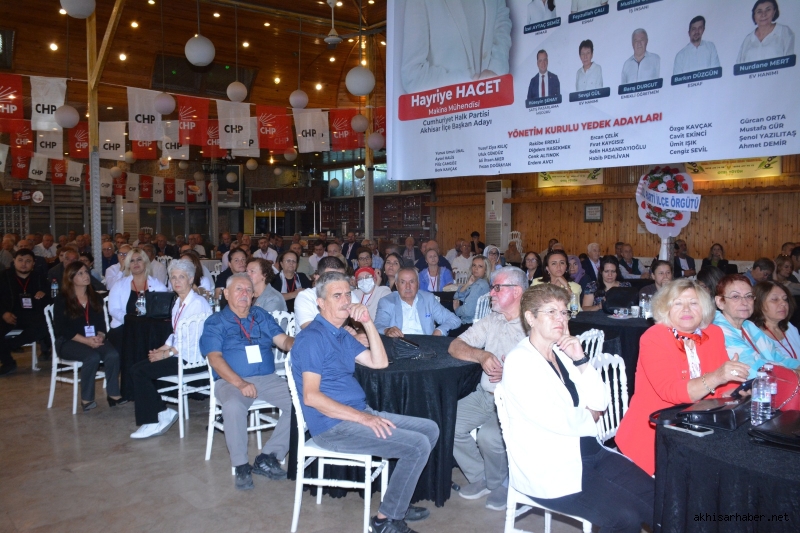 Cumhuriyet Halk Partisi (CHP) Akhisar İlçe Başkanlığı’nın 39. Olağan İlçe Kongresi, 27 Eylül Cumartesi günü Otel Tütün’de gerçekleştirildi. Tek listeyle seçimlere giren mevcut ilçe başkanı Hayriye Hacet, delegelerin oylarıyla yeniden başkanlığa seçildi.