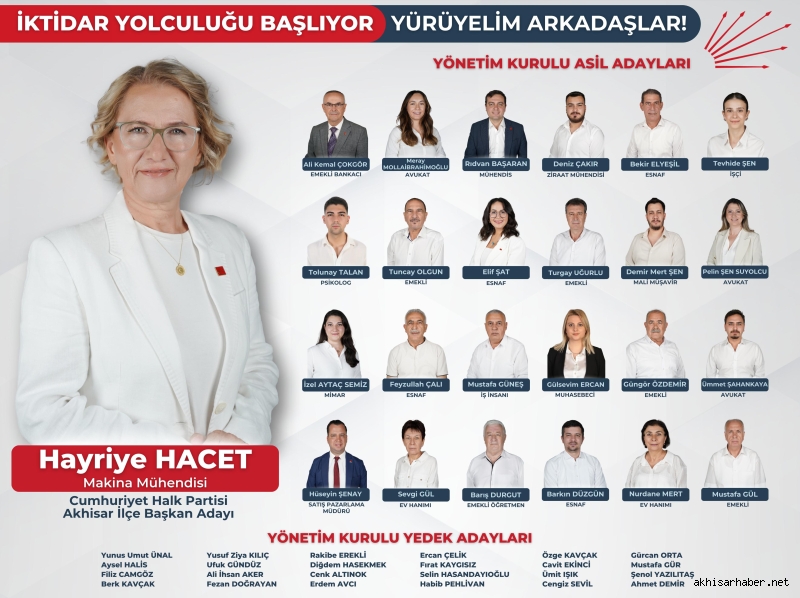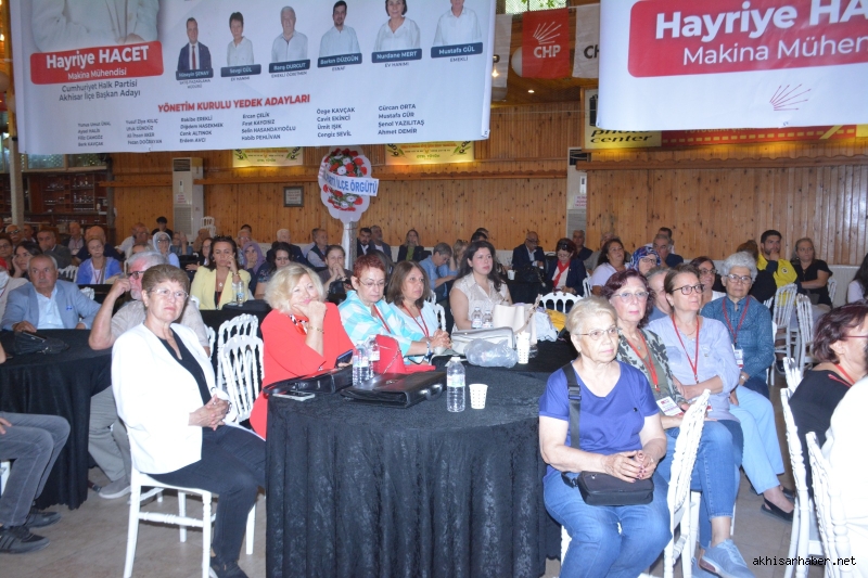 Kongre sonunda teşekkür konuşması yapan CHP Akhisar İlçe Başkanı Hayriye Hacet, “Durmadan, yorulmadan partimiz için çalışmaya devam edeceğiz. Bu bir ekip işi ve biz bu ekiple başarıya ulaşacağız” ifadelerini kullandı.
