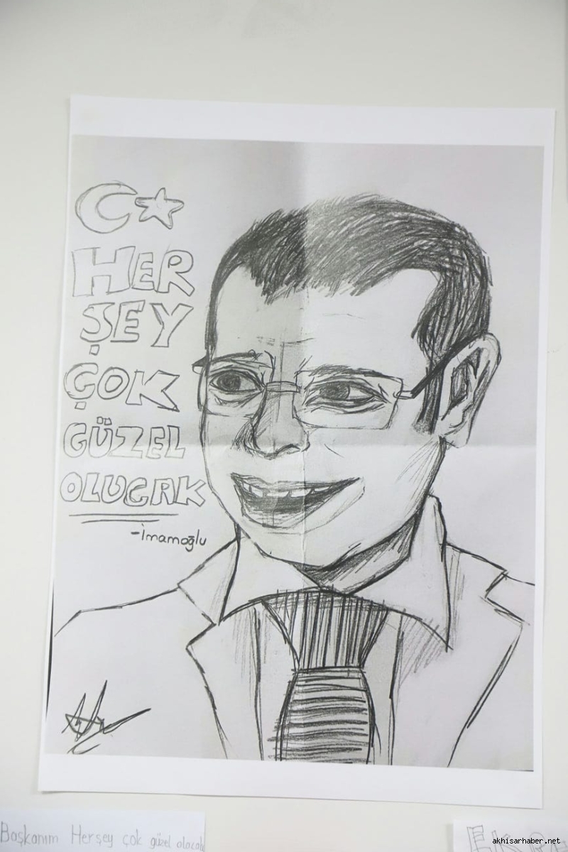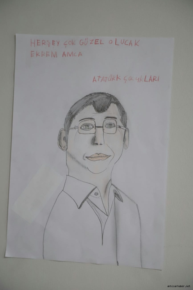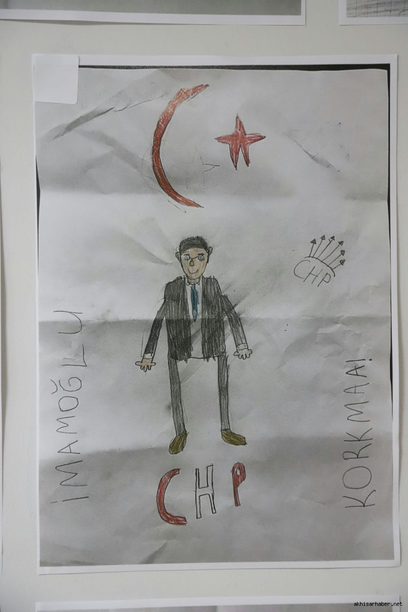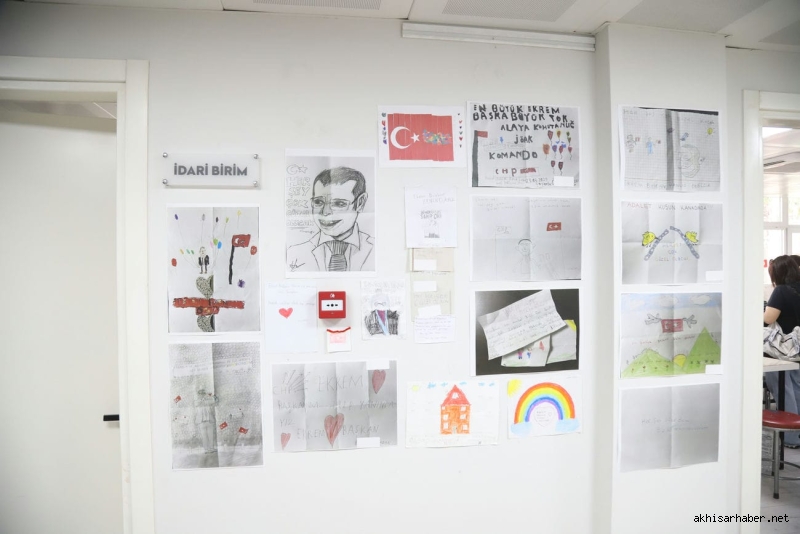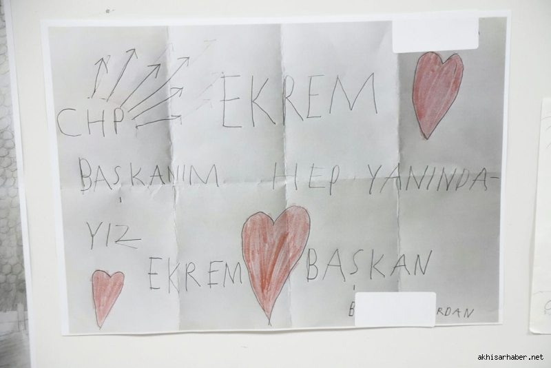 Hayriye Hacet’in ardından konuşan Akhisar Belediye Başkanı Besim Dutlulu ise, çocukların resimlerine duyduğu hayranlığı dile getirerek, “Bu sergide gördüğümüz her çizgi, çocuklarımızın adalete, özgürlüğe ve demokrasiye olan inancının bir göstergesidir. Ekrem Başkan sadece bir lider değil, bu ülkenin çocuklarının umudu olmuştur” ifadelerini kullandı.
