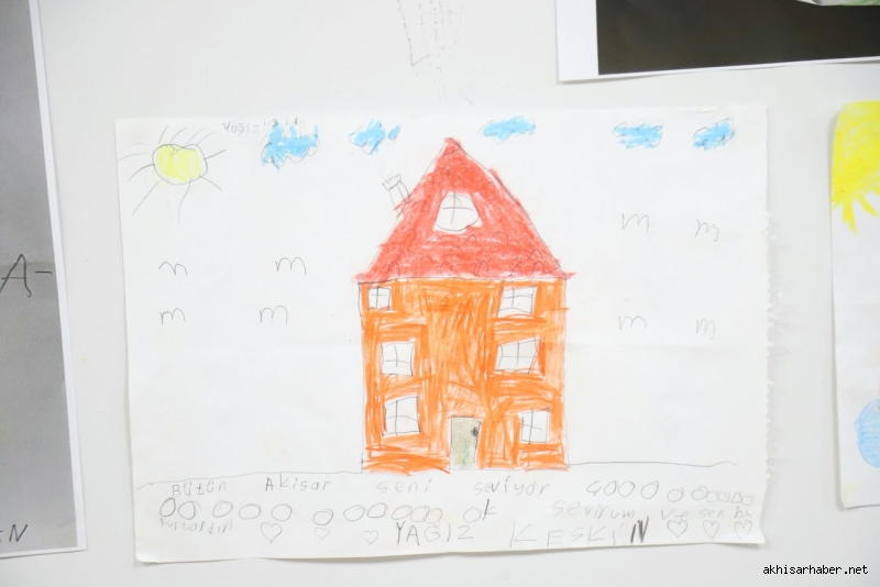 Sergide yer alan resimlerde, “Her şey çok güzel olacak”, “Sana söz oradan çıkacaksın” gibi umut dolu sloganların çocukların yorumlarıyla birleşerek sanata dönüştüğü görüldü.