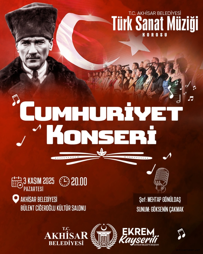 Etkinlikte, koro üyeleri tarafından seslendirilecek eserler eşliğinde Cumhuriyet coşkusu bir kez daha Akhisar’da yankılanacak.