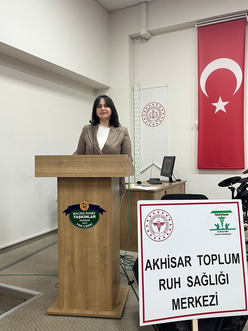 Akhisar Mustafa Kirazoğlu Devlet Hastanesi, gençlerde ruh sağlığı farkındalığını artırmaya yönelik çalışmalarını sürdürüyor. Bu kapsamda Psikiyatri Uzmanı Uz. Dr. Berkay Baştuğ ile Akhisar Toplum Ruh Sağlığı Merkezi Sorumlu Hemşiresi Özlem Ölmez, Akhisar Macide Ramiz Taşkınlar Fen Lisesi öğrencilerine yönelik bilgilendirici bir eğitim programı gerçekleştirdi.