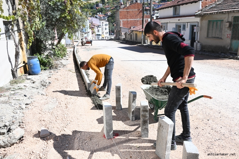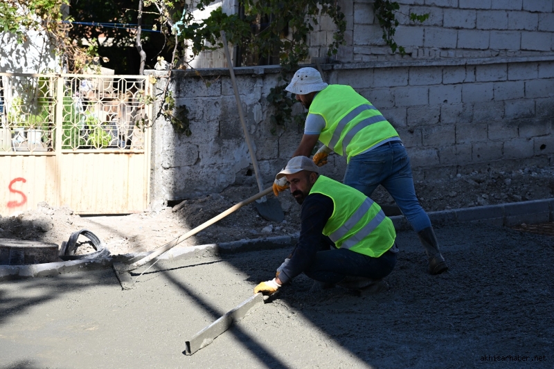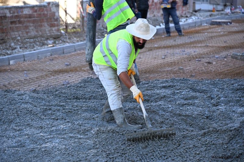 Akdere Caddesi’nde kazı, temel, bordür ve beton döküm işleri tamamlanırken kaldırım imalatları sürüyor.