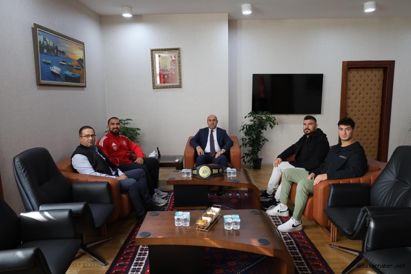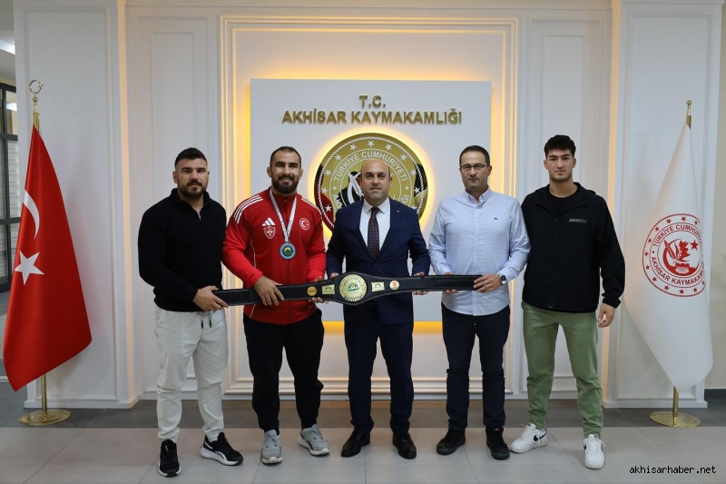 Türkiye’yi başarıyla temsil eden genç sporcu, kazandığı şampiyonluk kemeriyle Akhisar Kaymakamı Mustafa Can’ı ziyaret etti.