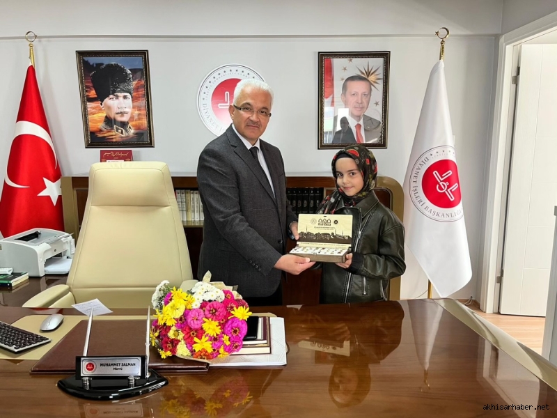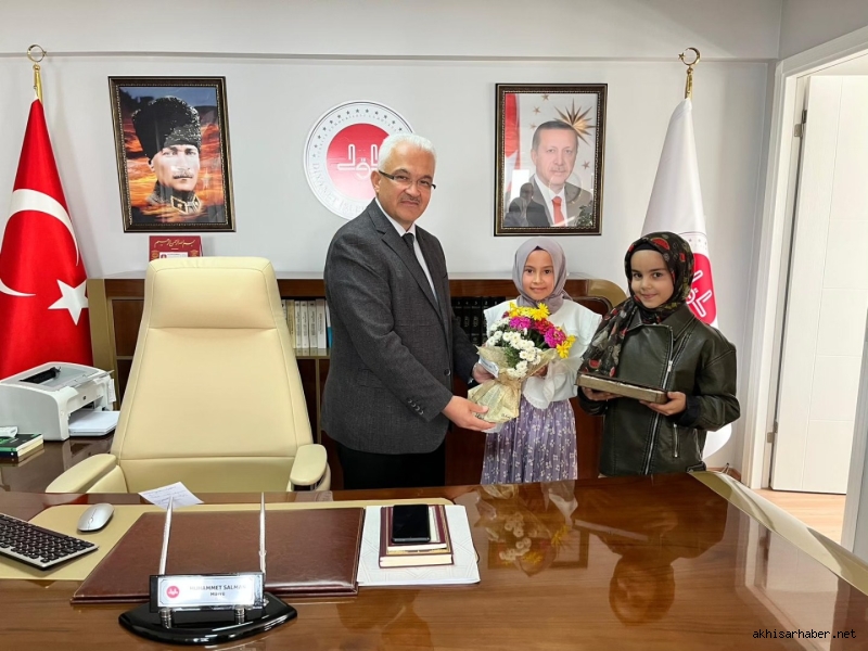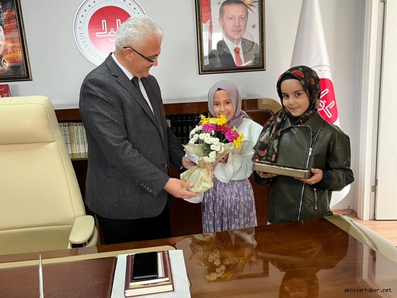 Akhisar Hilaliye Akademi Çocuk Kur’an Kursu öğrencileri, Akhisar İlçe Müftüsü Muhammet Salman’ı makamında ziyaret etti.