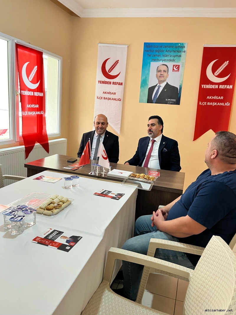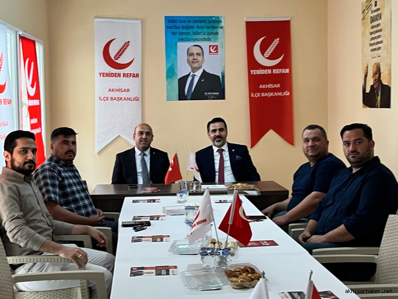 Akhisar Kaymakamı Mustafa Can, ilçedeki siyasi partilerle yürütülen iş birliği ve iletişim sürecine katkı sağlamak amacıyla Yeniden Refah Partisi Akhisar İlçe Başkanlığı’nı ziyaret etti. Parti binasında gerçekleşen ziyarette İlçe Başkanı Ünal Kaplan ve yönetim kurulu üyeleri tarafından karşılanan Kaymakam Can, karşılıklı fikir alışverişi yapılan samimi bir ortamda ağırlandı.