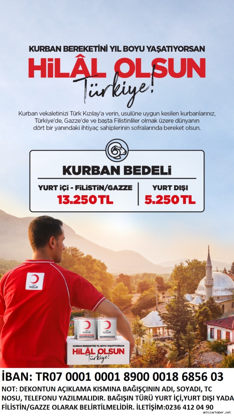 Kızılay Akhisar Şube Başkanı İrfan Korkmaz yaptığı açıklamada, “Bu yıl da vekaletle kurban kesim kampanyamızla 4 milyonun üzerinde ihtiyaç sahibine ulaşmayı hedefliyoruz. Etler hem taze dağıtılacak hem de kavurma konservesi haline getirilerek yıl boyunca aşevlerinde kullanılacak. Özellikle Gazze ve Filistin’deki mağdur halkımıza yönelik özel planlamalar yaptık. Konserve kavurma yardımları ile oradaki kardeşlerimizin yanında olacağız” dedi.