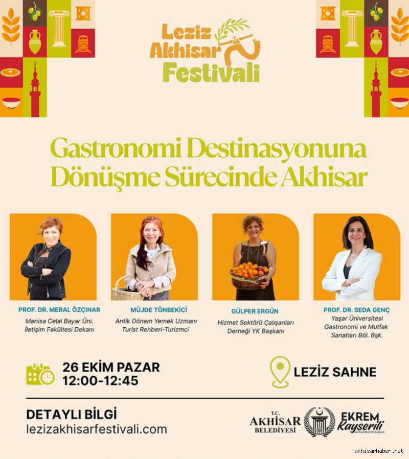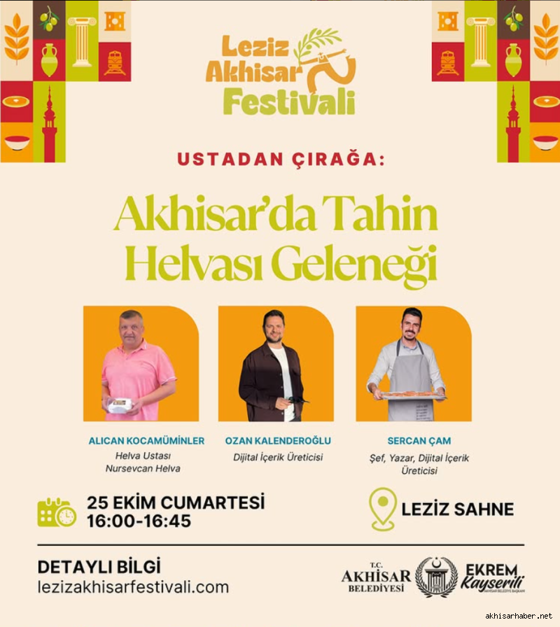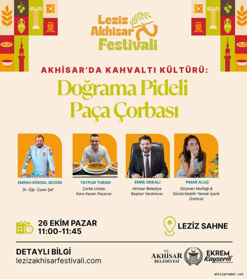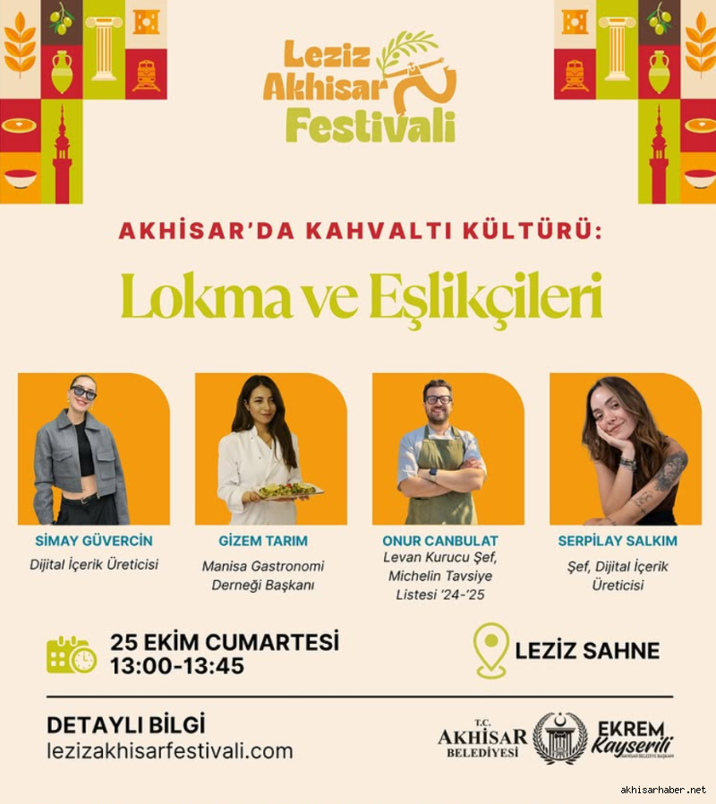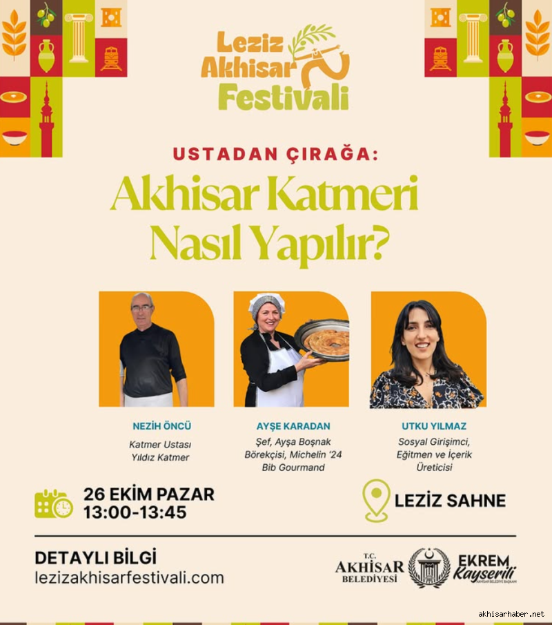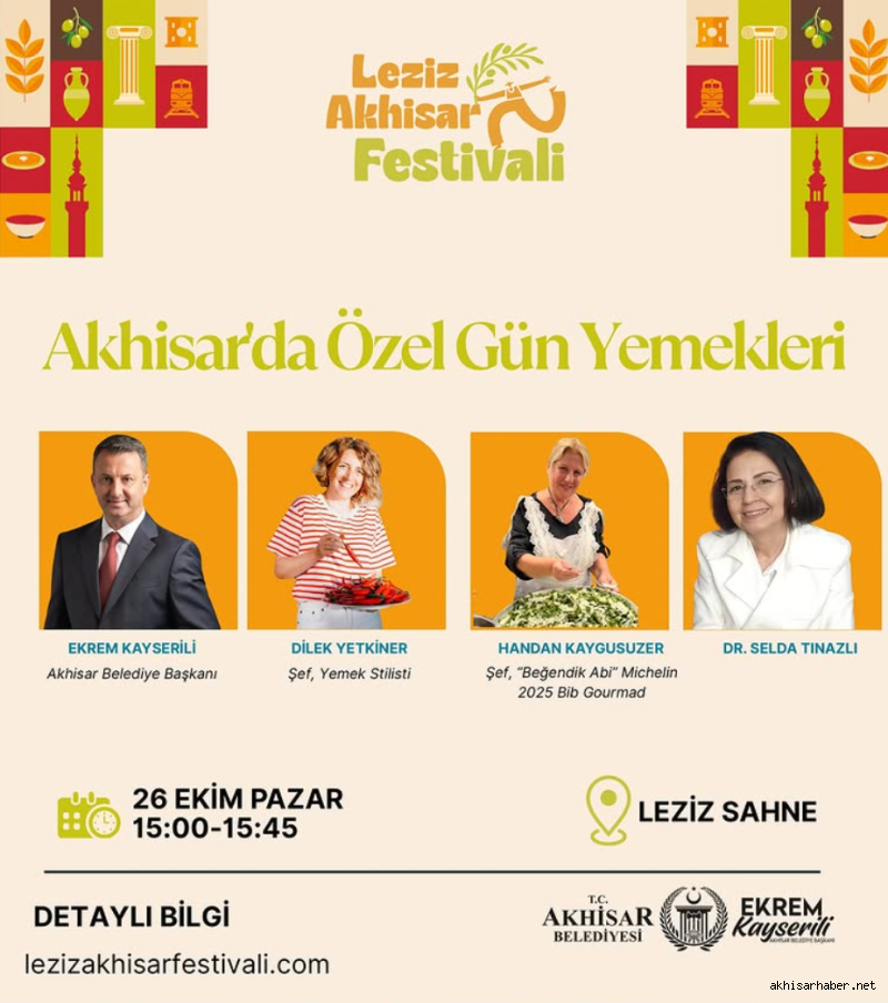 Festival, Akhisar’ın yerel lezzetlerini, mutfak kültürünü, geleneksel tariflerini ve coğrafi işaretli ürünlerini ulusal arenada tanıtmayı hedefliyor. İki gün sürecek etkinlik boyunca ziyaretçiler, ustadan çırağa atölyeler, gastronomi söyleşileri, canlı müzik konserleri ve özel tadım etkinlikleriyle dolu bir programa katılacak.