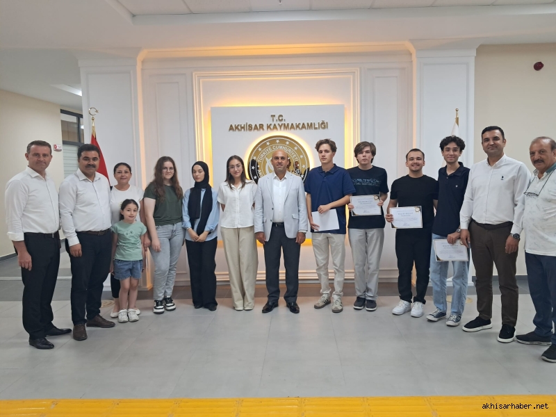 Akhisar’da 2025 Liselere Geçiş Sistemi (LGS) ve Yükseköğretim Kurumları Sınavı’nda (YKS) Türkiye derecesi elde eden öğrenciler, Kaymakam Mustafa Can tarafından ödüllendirildi. LGS’de 500 tam puan alarak Türkiye birincisi olan Ayvaz Dede İmam Hatip Ortaokulu öğrencisi Faruk Ferhat ile Akhisar Koleji Ortaokulu öğrencisi İslam Bera Çeneli; YKS’de TYT ve AYT’de ilk 1000’e giren Macide Ramiz Taşkınlar Fen Lisesi öğrencileri Mert Ege Bambal, Rümeysa Nur Aydoğmuş, Meryem Mert, Eray Berk Köse, Talha Selmanoğlu, Enes Kasım Karaman, Rümeysa Akçakaya ve Akhisar Koleji Fen Lisesi öğrencisi Çağrı Erinkarlı, Kaymakamlık makamında düzenlenen törende ödüllerini aldı.