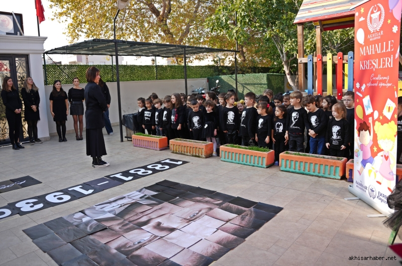 Akhisar Belediyesi bünyesindeki kreşlerde eğitim gören minikler, Cumhuriyetimizin kurucusu Gazi Mustafa Kemal Atatürk’ü duygu dolu bir etkinlikle andı.