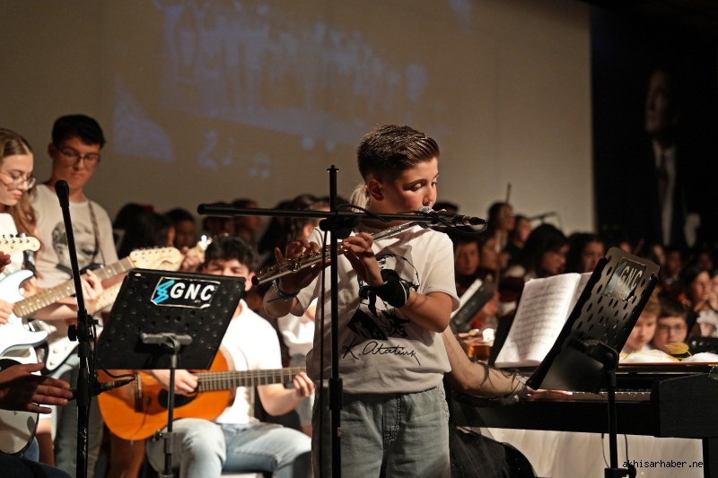 Akhisar Belediyesi Uğur Mumcu Kültür ve Sanat Merkezi’nin düzenlediği “Müzik Şöleni ve Mezuniyet” etkinliği, sanat dolu anlara sahne oldu. Orkestra Şefi ve Müzik Öğretmeni Nazime Naz Kazar’ın öncülüğünde sahne alan kursiyerler, seslendirdikleri eserlerle izleyicilere müzik dolu unutulmaz bir akşam yaşattı.
