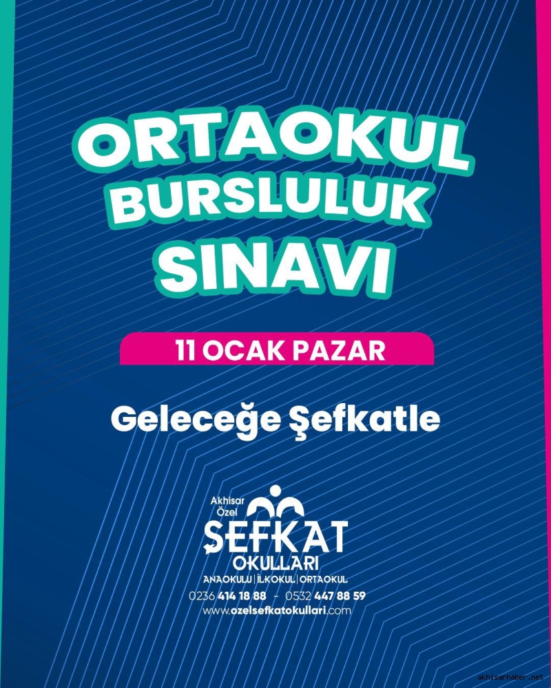 Akhisar Özel Şefkat Okulları, ortaokul düzeyinde öğrenim gören öğrenciler için düzenlediği Bursluluk Sınavı başvurularının başladığını duyurdu. Kurum tarafından yapılan açıklamaya göre sınav, 4, 5, 6 ve 7. sınıf öğrencilerinin katılımıyla 11 Ocak Pazar günü gerçekleştirilecek.