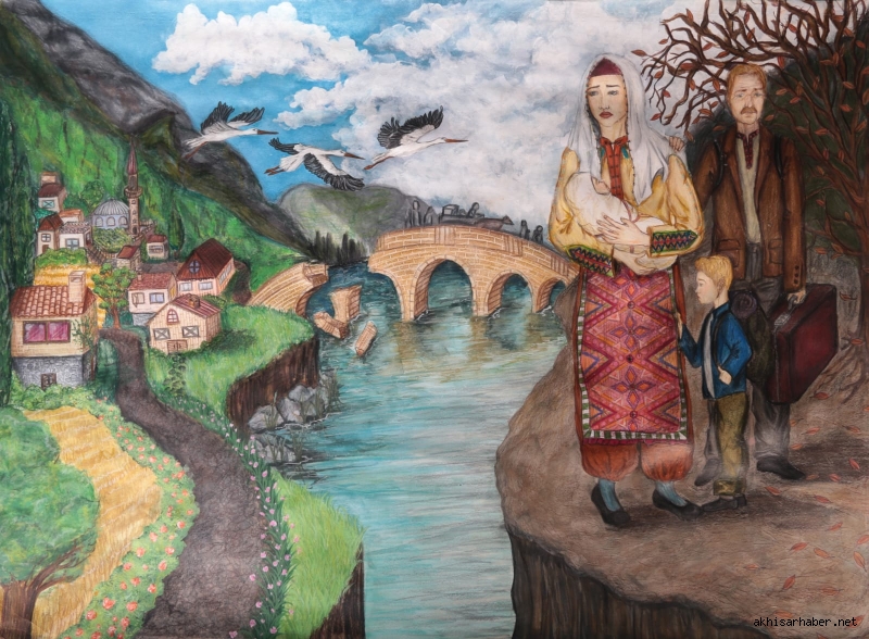 Eserde, Balkanlardan Türkiye’ye uzanan zorlu bir göç hikayesi pastel tonlarla ve simgesel imgelerle anlatıldı. Özellikle parçalanmış bir köprü üzerinden yeni bir yaşama doğru yol alan aile figürleri, izleyicilere göçün zorluklarını ve duygusal yönünü etkili şekilde yansıtıyor.