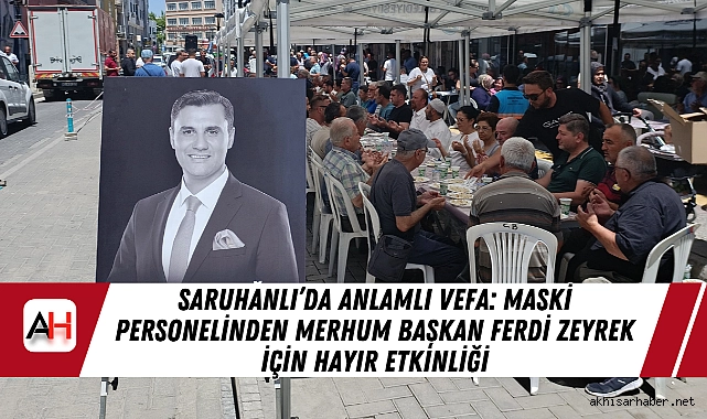 Saruhanlı MASKİ çalışanlarının kendi aralarında organize ettiği hayır programında, vatandaşlara etli pilav ikramında bulunuldu. İlçe merkezindeki alanda gerçekleşen etkinlikte, dualar edilerek Ferdi Zeyrek’in anısı yâd edildi. Vatandaşlar etkinliğe yoğun ilgi gösterirken, duygusal anlar yaşandı.