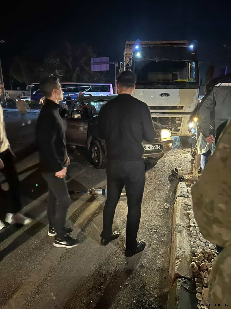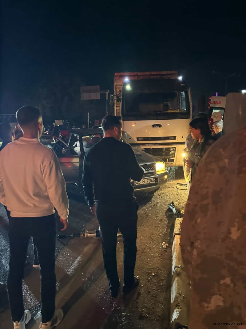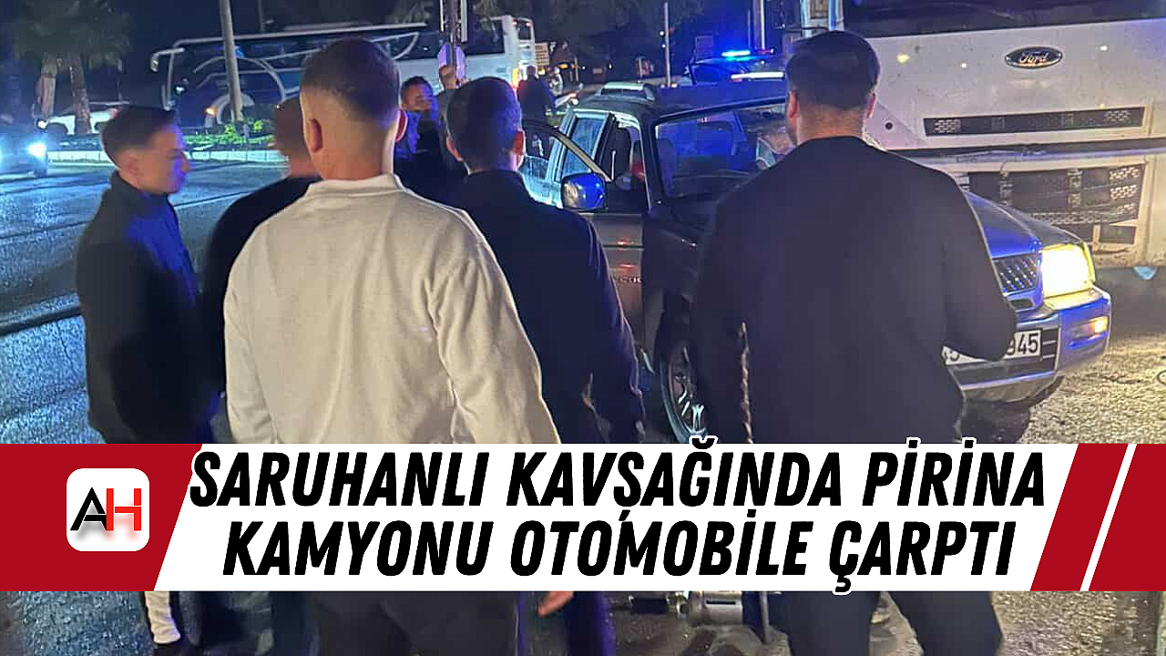 Akhisar ile Manisa arasındaki devlet karayolu üzerinde bulunan Saruhanlı kavşağında bugün pirina yüklü bir kamyonun kavşakta karşıdan karşıya geçmeye çalışan otomobile yandan çarpması sonucu trafik kazası meydana geldi. Çarpmanın etkisiyle otomobil sürücüsü olan kadın araçta sıkıştı; bölgede oluşan panik üzerine olay yerine sağlık, jandarma ve itfaiye ekipleri sevk edildi.