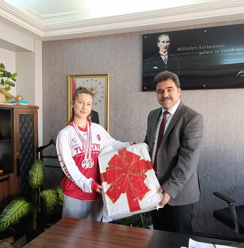 19-21 Şubat 2025 tarihleri arasında Erzurum Palandöken’de düzenlenen Snowbike ve SnowDownhill Türkiye Şampiyonası’nda büyük bir başarıya imza atarak Türkiye Şampiyonu olan Nazife Tuncel, Akhisar Namık Oğul Anadolu Lisesi öğrencisi olarak göğsümüzü kabarttı. Şampiyon öğrenci, başarılarını paylaşmak amacıyla Akhisar İlçe Milli Eğitim Müdürü Mükremin Karasu’yu ziyaret etti.