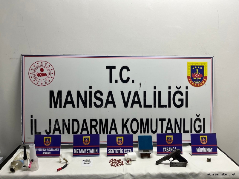 Yapılan aramada; 42 adet sentetik ecza, 2 gram uyuşturucu madde, 1 adet hassas terazi, 5 adet uyuşturucu kullanma aparatı ve 1 tabanca ele geçirildi.