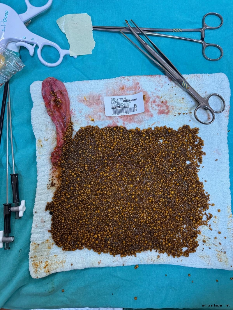 “Laparoskopik yöntemle safra kesesini perfore etmeden çıkardık. Piyesi açtığımızda 2–3 milimetre boyutlarında, sayamayacağımız kadar çok taşla karşılaştık. Yapay zekâ ile yaptığımız tahminlere göre kesede 20.000’in üzerinde taş bulunuyordu. En kritik nokta, bu taşları karın içine düşürmeden çıkarmaktı ve bu süreci başarıyla yönettik. Hastamız iyi durumda, sorun çıkmazsa yarın taburcu edilecek.”