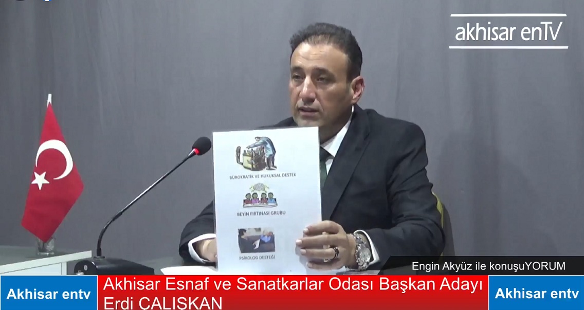 Geçtiğimiz çarşamba günü, sosyal medya hesaplarımız ve YouTube kanalımız üzerinden canlı yayınlanan “Engin Akyüz ile konuşuYORUM” programında, Akhisar Esnaf ve Sanatkarlar Odası Başkan Adayı Erdi Çalışkan’ı konuk ettim. Hem kendisini daha yakından tanıma hem de adaylık sürecine dair detaylı bir sohbet gerçekleştirme fırsatı bulduk.
