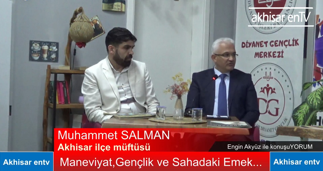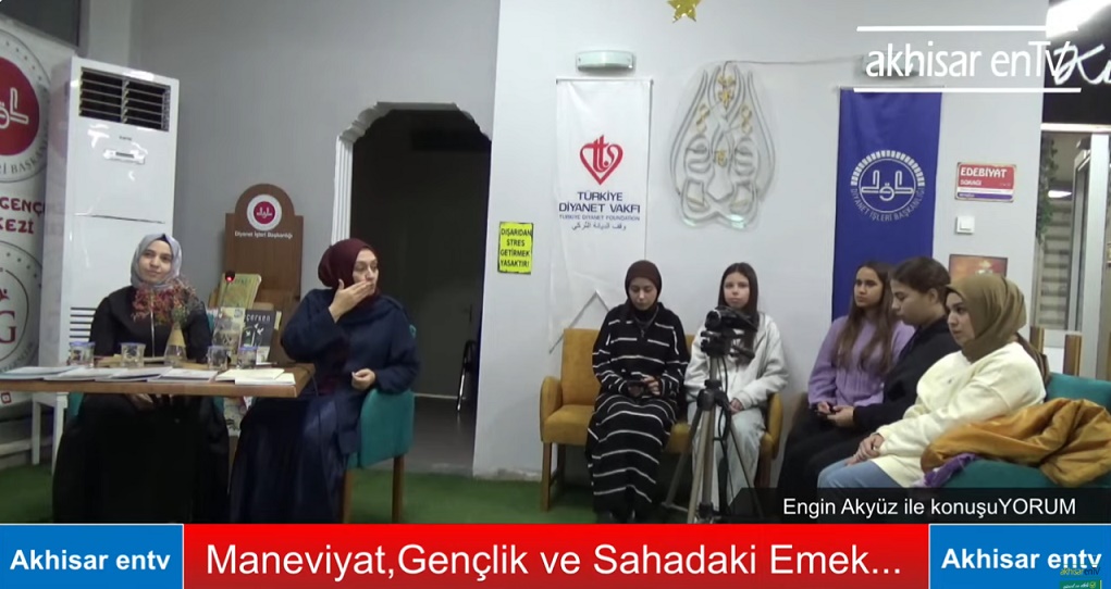 Bu nezih mekânda “Engin Akyüz ile KonuşuYORUM” programımızı gerçekleştirdik. Ev sahiplerimiz Akhisar İlçe Müftüsü Muhammet Salman, Gençlik Koordinatörü Muhammet Lütfullah Yelkovan, Engelli Koordinatörü Zeynep Darende ve Kurs Öğreticisi Zekiye Bozkuş’tu. Bu kez misafir bizdik.